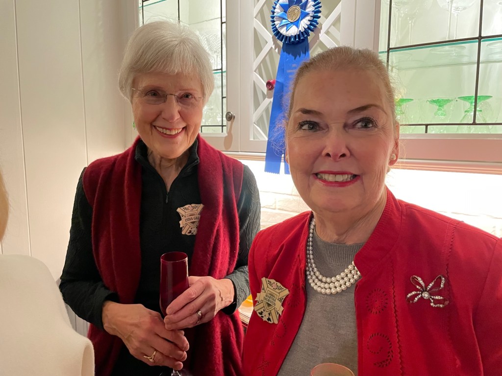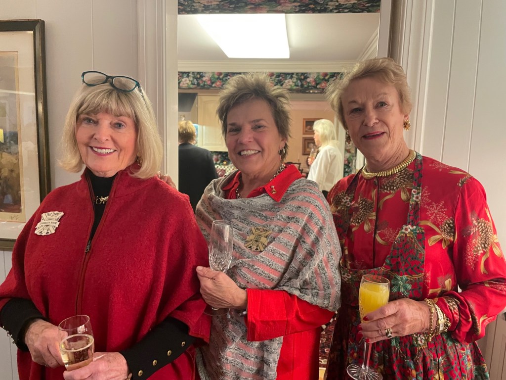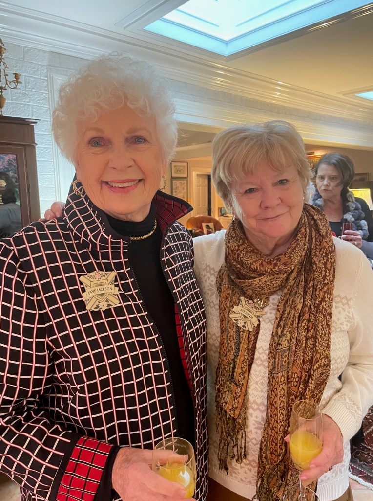 Donna Verrilli offered her gorgeous home to our members for a wonderful holiday brunch … and everyone was enchanted. We were delighted to see many of our members as well as associate members. Champagne and Mimosas were the order of the day, followed by brunch – complete with trifles for dessert. Our hostesses, Cav Peterson, Sharon Lawson and Pat Rudovsky were festive in Christmas aprons and there was plenty of time to visit before we ate. A door prize basket was won by Jane Jackson, and everyone loved both the beautiful views of the gardens as well as the luxurious settings in the living and dining rooms. We were SO GLAD to see everyone. This event set quite the standard for holidays to come.