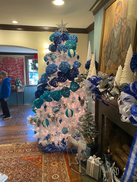 Weymouth House was the site of our December meeting, and all the members got to see all the decorations created by the area Garden Clubs, and particularly the SPECTACULAR room presented by the Garden Club of the Sandhills. It provided an extra special welcoming room to the house for the month of December. We had a wonderful buffet – a holiday potluck contributed by all our members, and organized by our wonderful hostesses, Marcia DeBolt, Elizabeth Fisher and Elaine Porzio. Thanks to everyone for the contributions! There was also entertainment…. including a surprise boogie by Thea’s talented husband, Dick. What a treat!